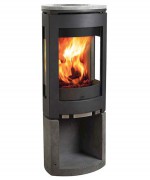 Печь черного цвета. Матовая. Со стеклянной дверцей. Возможность вывода дымохода верхний/задний. Цена: 43240 руб.