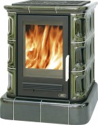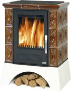 Печь HelvetiaЭта кафельная печь, с топочной частью, выполненной из чугуна. Снаружи выделана кафельным изразцом. Расцветки кафеля: коричневый, зеленый.