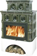 Печь Regina с кафельным цоколемЭта кафельная печь, с топочной частью, выполненной из чугуна. Снаружи выполнена кафельным изразцом с каменным цоколем. Расцветки кафеля: коричневый, зеленый, песчаный.