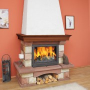 Прекрасный камин в рустикальном стиле требующий большой точности обработки песчаника. Полированные элементы изготовлены из натурального мрамора. Балка из дуба. Существует угловой вариант. Совместим с топками 700 и 750 серии с прямым стеклом. Размеры: - пристенный вариант: 155x114x71 см