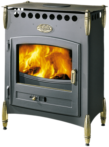 Имеется фронтальная загрузка дров. Корпус выполнен их чугуна и стали с латунированными элементами.