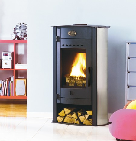 Имеется фронтальная загрузка дров. Фасад выполнен в форме овала.