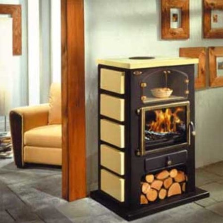 Имеется фронтальная загрузка дров. Корпус выполнен их чугуна и стали, а таже жаропрочного бетона.