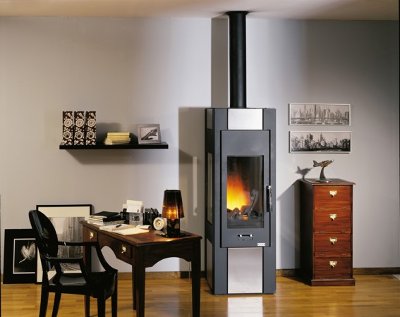 Имеется фронтальная загрузка дров. Корпус выполнен их чугуна и стали. Варианты расцветки: черный, нержавеющая сталь.