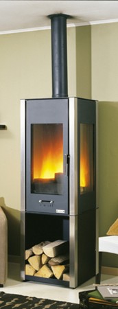 Имеется фронтальная загрузка дров. Корпус выполнен их чугуна и стали. Варианты расцветки: черный, нержавеющая сталь.