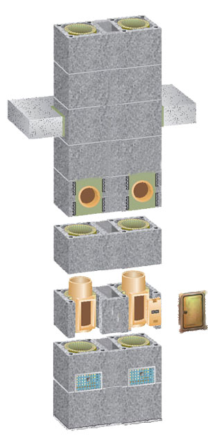 3. Покрытый бетонной оболочкой блок – утепленный керамический тройник, имеющий герметично закрываемое
