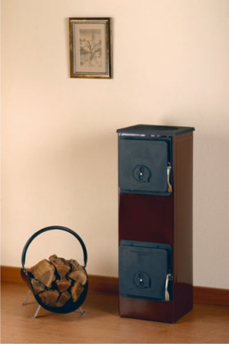 Оригинальная печь-камин, выполненная в черном и коричневом цвете. Станет аккуратным и уютным дополнением вашего загородного домика.