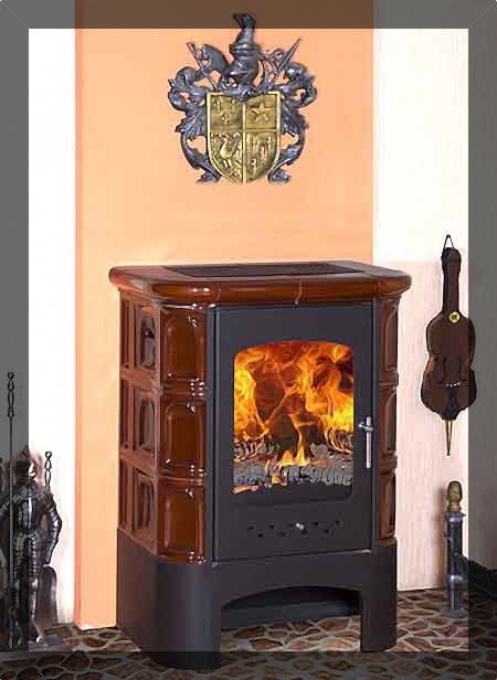 Боковая поверхность печи облицована керамической плиткой. Диаметр дымохода – 150 мм.