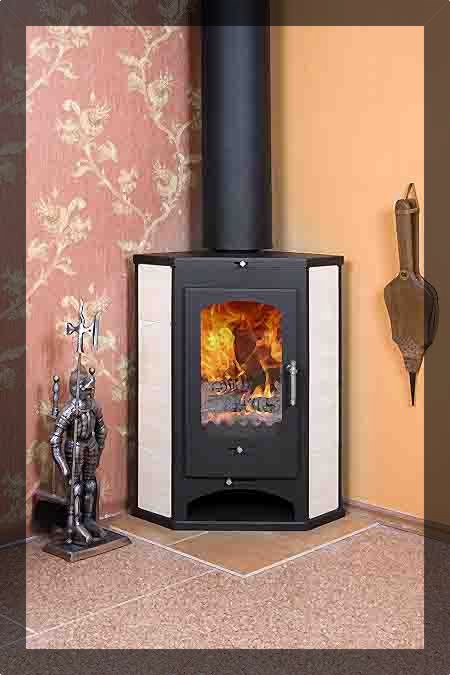Боковая поверхность печи облицована керамической плиткой. Диаметр дымохода – 150 мм.