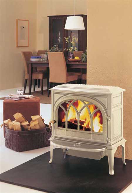 Чугунная печь белого цвета. Эмаль. Возможность вывода дымохода верхний/задний.
