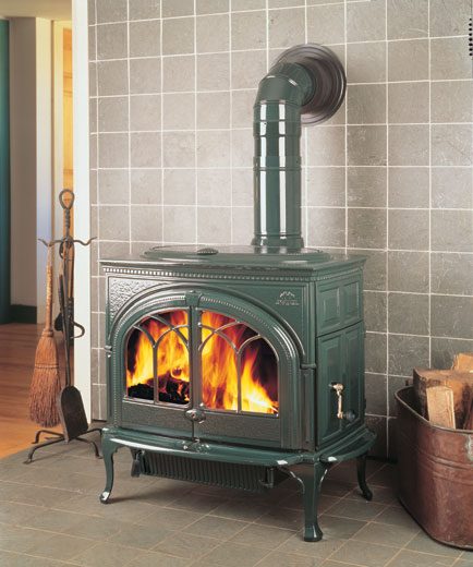 Чугунная печь цвета морской волны. Возможность вывода дымохода верхний/задний.