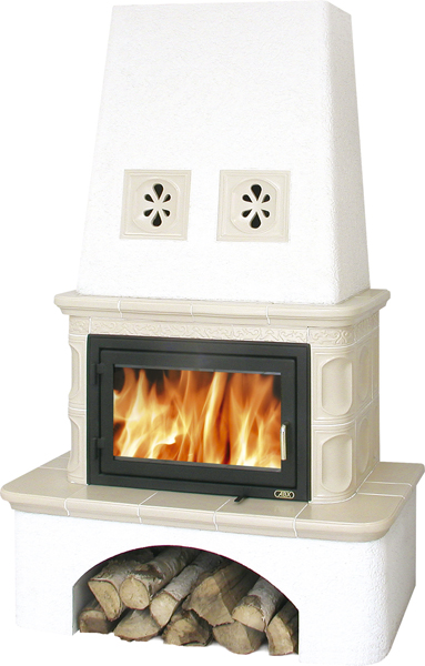 Эта кафельная печь. Снаружи выполнена кафельным изразцом. Расцветки кафеля: коричневый, песчаный, зеленый.