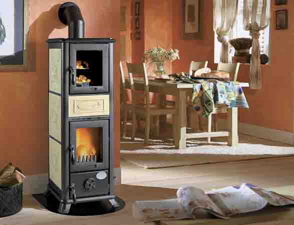 Крепость эмалированного чугуна и стали, удобство готовки, стиль майоликовой облицовки и широкая топка с застекленной дверцей – все это печь, подходящая к любому интерьеру. Внешнее покрытие из стеатита или майолики. Дверцы и головка из чугуна.