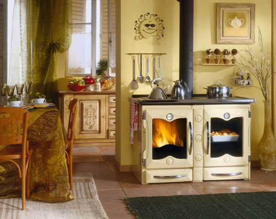 Красивая и элегантная, эта печь достойна находиться на самых лучщих кухнях этого мира! Она уже готова выполнить любое ваше желание. Традиционная, а вместе с тем современная, эта печь сочетает в себе новые технологии и использование качественных материалов. Внешнее покрытие из эмалированного чугуна. Станина, плитка и обручи из чугуна. Имеет также отсек для хранения дров.