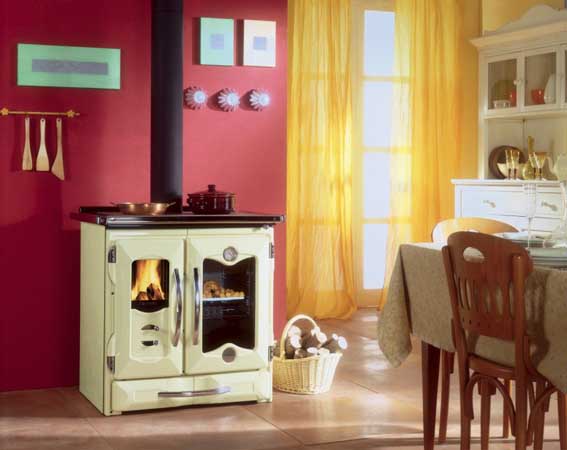 Эта печь просто создана для большой и дружной семьи. Внешнее покрытие этой печи выполнено из эмалированного чугуна. Станина, плитка и обручи из чугуна. Имеется ящик для хранения дров.
