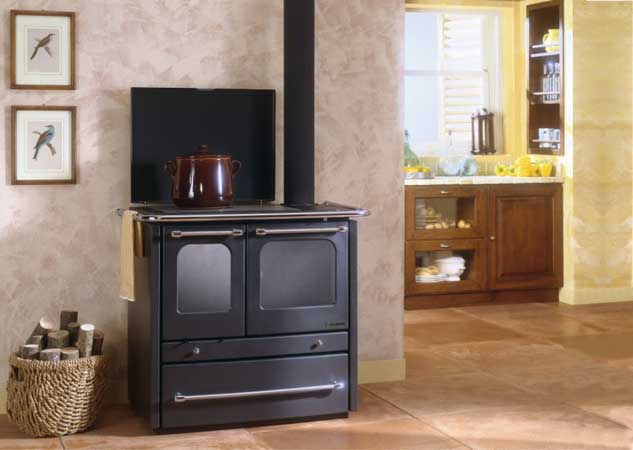 Sovrana - это печь, в которой продумано все до мельчайших подробностей. Элегантная, стильная, неповторимая! К тому же удобная и практичная, о чем еще можно мечтать? Внешнее покрытие сделано из стали под фарфор(глянцевое). Станина, плитка и обручи из чугуна. Имеет ящик для хранения дров.