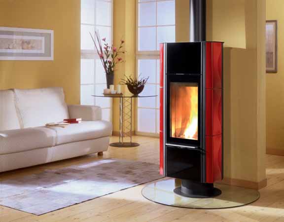 Печь выполнена в изящном стиле. Отделана майоликой, топка оснащена панорамной дверкой. К тому же эта печь вращается на 90 градусов.