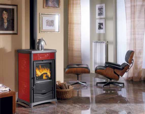 Дизайн? Выполненный с помощью сочетнаия двух цветов делает эту печь не просто бытовым прибором, но и элегантным элементом декора. Топка имеет возможность подключаться к системе центрального отопления и отапливать все помещение дома. Наружное покрытие выполнено из майолики или стеатита. Дверцы из чугуна Имеет также вынимаемый ящик для дров.