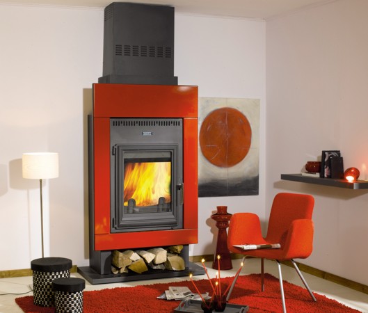 Имеется фронтальная загрузка дров. Корпус выполнен их чугуна и стали с декором.