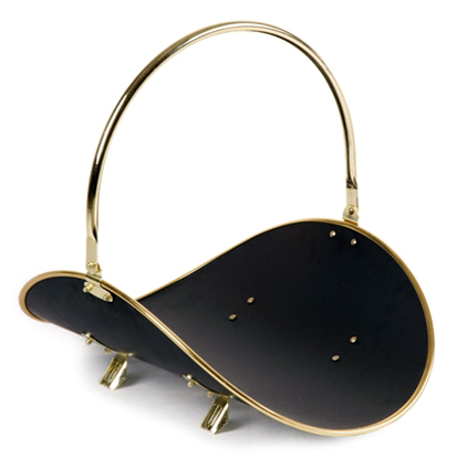 Дровница черного цвета украсит вашу гостиную. У этой модели окантовка, ручка и ножки отделаны полированной латунью.