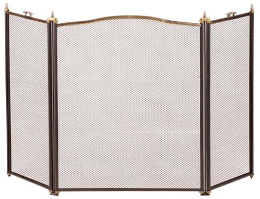 Трехстворчатый экран с черным низом защитит комнату от искр и угольков. Верх экрана изготовлен из античной латуни.