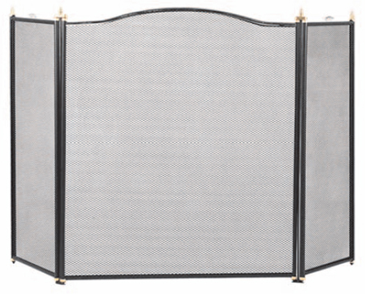 Стильный трехстворчатый черный экран удачно впишется в интерьер комнаты, защитив ее от летящих из камина искр.