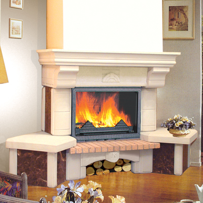 Каминная облицовка Элегия имперадор 700 предназначена для отделки топок 700 серии из чугуна или стали закрытого типа (с дверцей, застекленной термостойким стеклом). Детали облицовки изготавливаются из искусственного камня белого или желтого цвета. Цвета вставок - кантри. Облицовка - угловая. Габаритные размеры 1275х1275 мм.