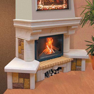 Каминная облицовка предназначена для отделки топок из чугуна или стали закрытого типа (с дверцей, застекленной термостойким стеклом). Детали облицовки изготавливаются из иcкусcтвенного камня белого или желтого цвета, цвета вставок "Рустик". Основу камня составляет мраморная крошка. В местах наибольшего теплового потока устанавливаются клинкерные панели из шамотного кирпича (META-Stone). Конструкция облицовки "ЭЛЕГИЯ РУСТИК" рассчитана на установку в угол 90˚. Закрытая чугунная топка AURORA 700 выпускается с 2001 года. На топку дан государственный сертификат соответствия и пожарной безопасности. Гарантия изготовителя до 3-х лет при соблюдении требований к установке и эксплуатации. Мощность 11 кВт.