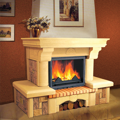 Каминная облицовка НОКТЮРН РУСТИК предназначена для отделки топок из чугуна или стали закрытого типа (с дверцей застекленной термостойким стеклом). Детали облицовки изготавливаются из искусственного камня белого или желтого цвета, цвета вставок "РУСТИК". Основу камня составляет мраморная крошка. В местах наибольшего теплового потока устанавливаются клинкерные панели из шамотного кирпича (META-Stone). Конструкция облицовки "НОКТЮРН РУСТИК" рассчитана на пристенную установку. Топка СОЖ - закрытая стальная топка выпускается с 2002 г., с соблюдением норм евростандарта, снабжена системой "чистое стекло", кожухом для распределения горячего воздуха и монтажными ножками. Мощность 10 кВт.