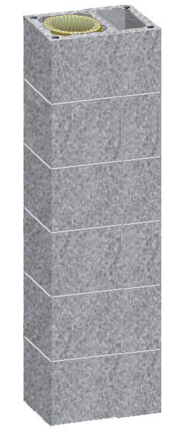 В комплект входят стандартные блоки дымохода – бетонная оболочка, в которую помещена утепленная труба из керамики.