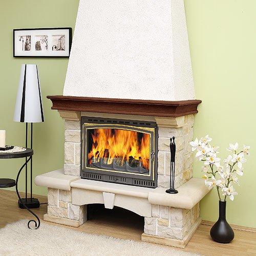 Классический европейский камин, изготовлен из кремового песчаника. Балка из дуба. Существует угловой вариант. Совместим с топками 700 серии с прямым стеклом.