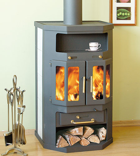 NARWIK – элегантная печь-камин с призматическим обзором пламени. Ее особенности – чугунный колосник и боковые панели, изготовленный из керамики.