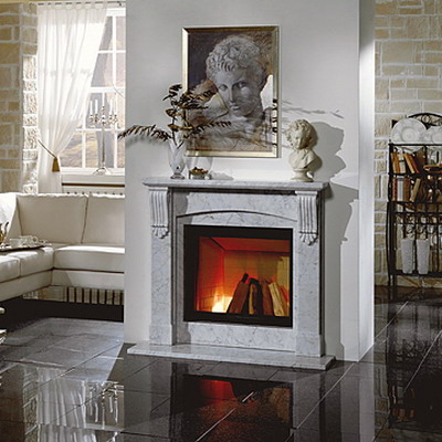 Портал из натурального камня: Мрамор (Negro Marguina, Crema Marfil, Rosa Imperial, Rosa Crema, Blanco Carrara, Blanco Macael, Rojo Alicante. Песочный камень: (Arenisca San Miguel, Piedra de Silos, Caliza Moka, Travertino Romano, Crema Nuevo). В комплект входят вставные отделочные рамки, необходимые для оптимального монтажа топки. Топка Schmid Lina 7363 с дверцей, имеющей открытие вверх. Номинальная мощность - 10 кВ, диаметр дымохода - 200 мм. Цена в зависимости от исполнения топки: Антрацит - 6 405 00. Deco, позолота матовая* - 6 575 00. Deco, хромирование матовое* - 6 575 00. Позолота матовая* - 6 950 00. Хромирование матовое* - 6 950 00. Размеры: В 1300 хН 1130 х Т 300 мм. Все позолоченные или хромированные передние панели выполняются либо в глянцевом, либо в матовом исполнении. При хромировании или позолоте всех видимых деталей передней панели топки и ее дверцы, стоимость камина увеличивается на 142 Евро. Наценка при комплектации камина с топкой, имеющей открытие вверх, составляет 450 Евро.