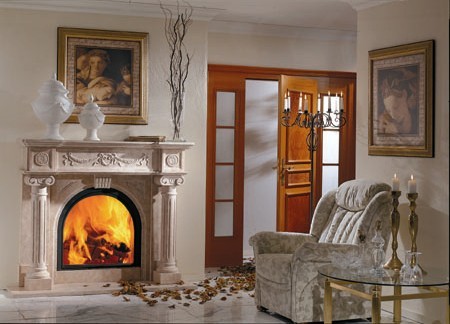 Портал из натурального камня: Мрамор (Negro Marguina, Crema Marfil, Rosa Imperial, Rosa Crema, Blanco Carrara, Blanco Macael, Rojo Alicante. Песочный камень: (Arenisca San Miguel, Piedra de Silos, Caliza Moka, Travertino Romano, Crema Nuevo). В комплект входят вставные отделочные рамки, необходимые для оптимального монтажа топки.Топка с дверцей, имеющей открытие вверх. Номинальная мощность -11 кВ, диаметр дымохода - 200 мм. Цена в зависимости от исполнения топки: Антрацит- 12 780 00. Deco, позолота* - 12 980 00. Deco, хромирование* - 12 980 00. Позолота* - 13 835 00. Хромирование* - 13 835 00. Размеры: В 1600 хН 1280 х Т 665мм. Все позолоченные или хромированные передние панели выполняются либо в глянцевом, либо в матовом исполнении. При хромировании или позолоте всех видимых деталей передней панели топки и ее дверцы, стоимость камина увеличивается на 142 Евро. Наценка при комплектации камина с топкой, имеющей открытие вверх, составляет 450 Евро.
