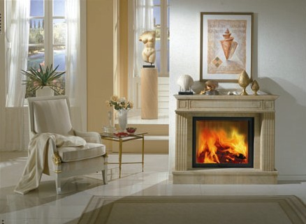 Портал из натурального камня: Мрамор (Negro Marguina, Crema Marfil, Rosa Imperial, Rosa Crema, Blanco Carrara, Blanco Macael, Rojo Alicante. Песочный камень: (Arenisca San Miguel, Piedra de Silos, Caliza Moka, Travertino Romano, Crema Nuevo). В комплект входят вставные отделочные рамки, необходимые для оптимального монтажа топки. Топка Schmid Lina 7363 с дверцей, имеющей открытие вверх. Номинальная мощность -9 кВ, диаметр дымохода - 180 мм. Цена в зависимости от исполнения топки: Антрацит - 6 170 00. Deco, позолота* - 6 340 00. Deco, хромирование* - 6 340 00. Позолота* - 6 715 00. Хромирование* - 6 715 00. Размеры: В 1260 хН 1070 х Т 210 мм. Все позолоченные или хромированные передние панели выполняются либо в глянцевом, либо в матовом исполнении. При хромировании или позолоте всех видимых деталей передней панели топки и ее дверцы, стоимость камина увеличивается на 142 Евро. Наценка при комплектации камина с топкой, имеющей открытие вверх, составляет 450 Евро.