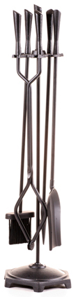 Черный каминный набор состоит из 4 предметов с изящными рукоятями.