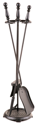 Классический набор черного цвета для камина. Состоит из 4 предметов.