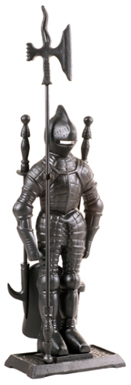 Черный набор для камина состоит из 4 предметов. Отличительная черта комплекта – необычная подставка.
