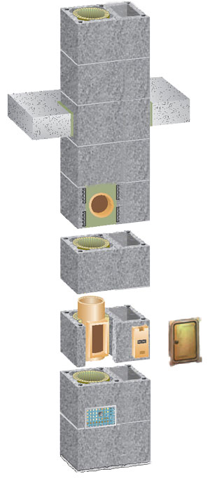 Основание дымохода представляет собой базовый комплект из 9 блоков: