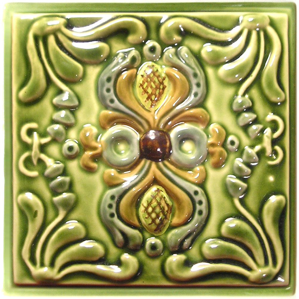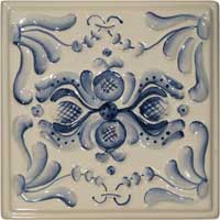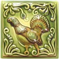 Изразец «Цветок» из коллекции «Охота на птиц» с ручной росписью. Размер 145х145 мм.