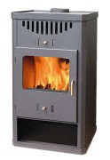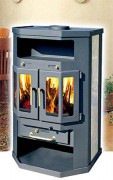Имеет специальный вынимаемый ящик для дров. Внешнее покрытие из эмалированого чугуна.